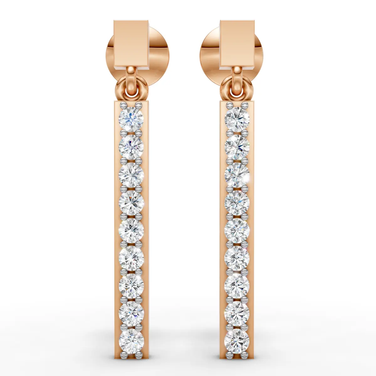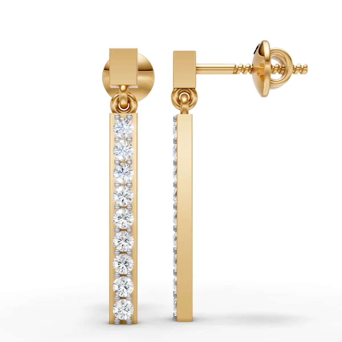 Sleek drop earrings featuring a vertical bar design set with sparkling diamonds. A modern and elegant style that adds subtle brilliance to any look.