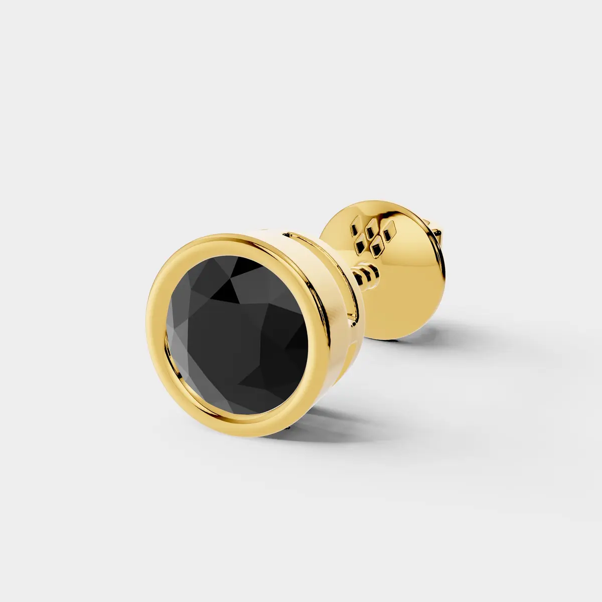 This sleek stud earring showcases a striking round black diamond set in a smooth bezel-style frame that highlights its bold and sophisticated look. The deep black diamond creates a powerful contrast while offering a modern and stylish appeal. Its clean circular design keeps the focus on the stone?s unique character and elegance. Perfect for everyday wear or statement styling, this stud adds a touch of contemporary luxury to any look. Designed with a secure screw-back closure for comfortable and reliable wear throughout the day. ?