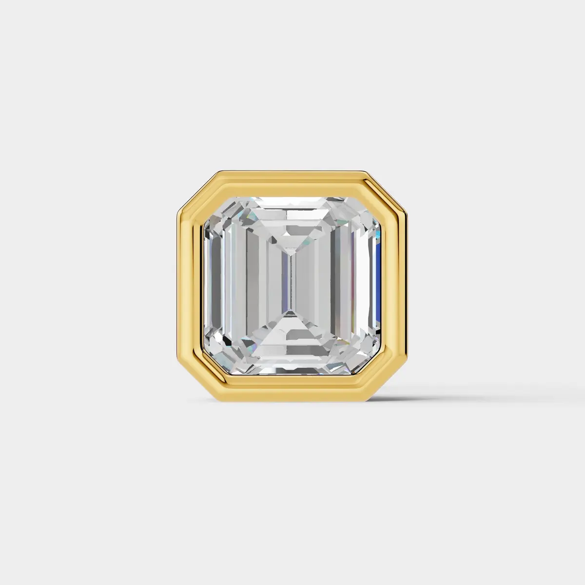 This elegant stud earring features a stunning Asscher cut diamond set in a sleek bezel-style frame that enhances its distinctive square shape with trimmed corners. The step-cut facets of the Asscher diamond create a captivating hall-of-mirrors effect, offering a refined and sophisticated sparkle. Its clean geometric design gives the piece a timeless and modern appeal, perfect for both everyday wear and special occasions. Designed with a secure screw-back closure, this stud ensures comfortable and reliable wear while adding classic brilliance to any jewelry collection. ?