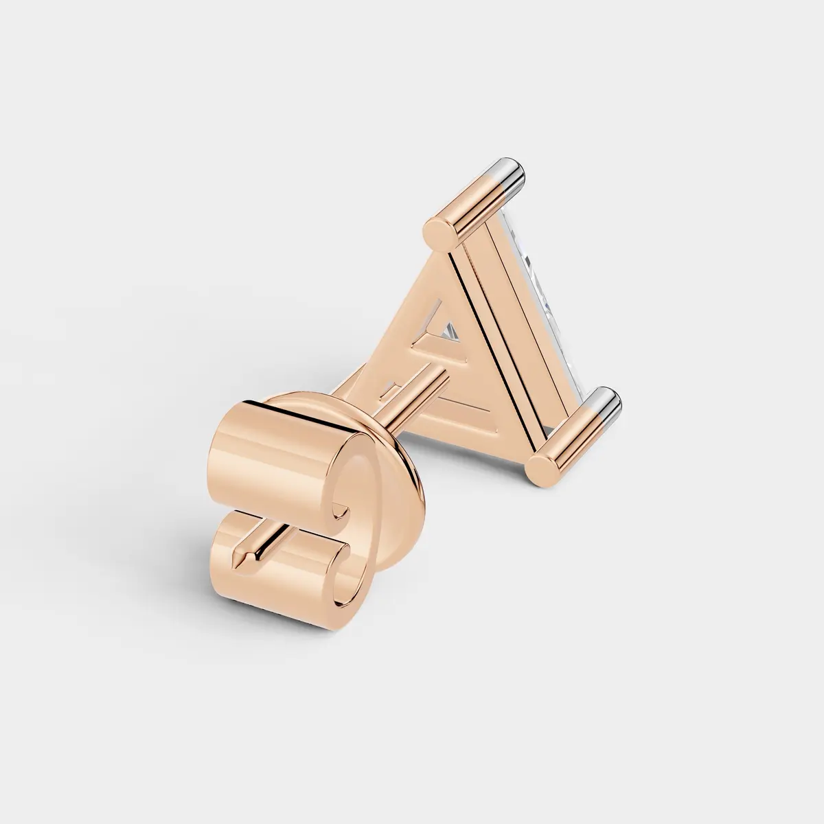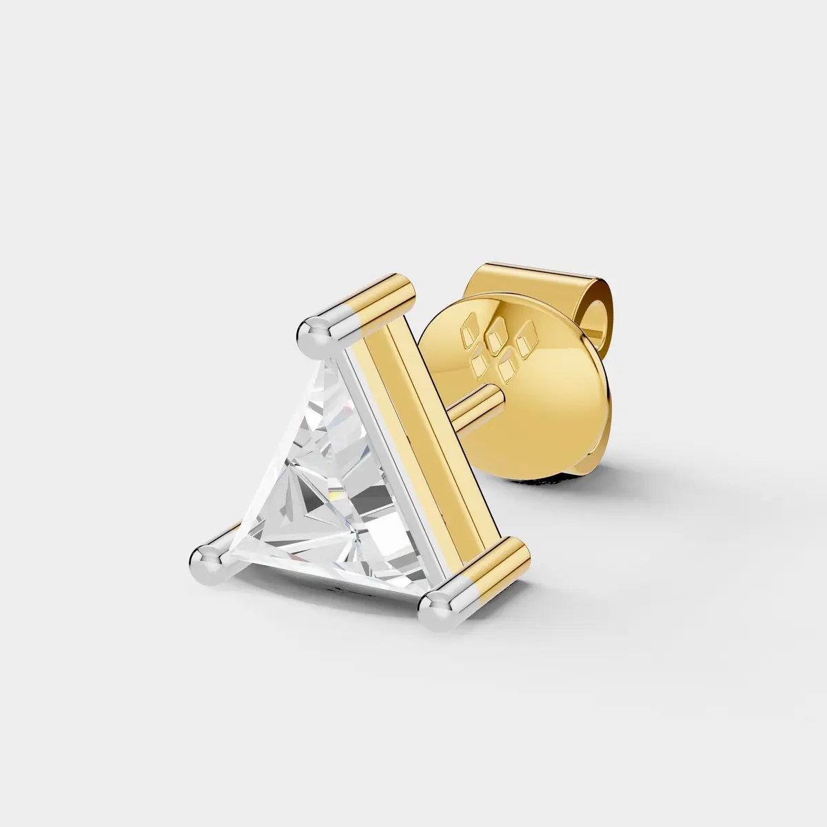 This modern stud earring features a brilliant triangle-shaped diamond that creates a bold and contemporary look. The clean geometric design highlights the unique shape of the diamond, allowing light to reflect beautifully from every angle for exceptional sparkle. Its sleek and minimal style makes it perfect for everyday wear while still offering a distinctive statement. Designed with a secure screw-back closure, this earring provides comfortable and reliable wear throughout the day. A stylish piece that brings modern elegance and brilliance to any jewelry collection. ?