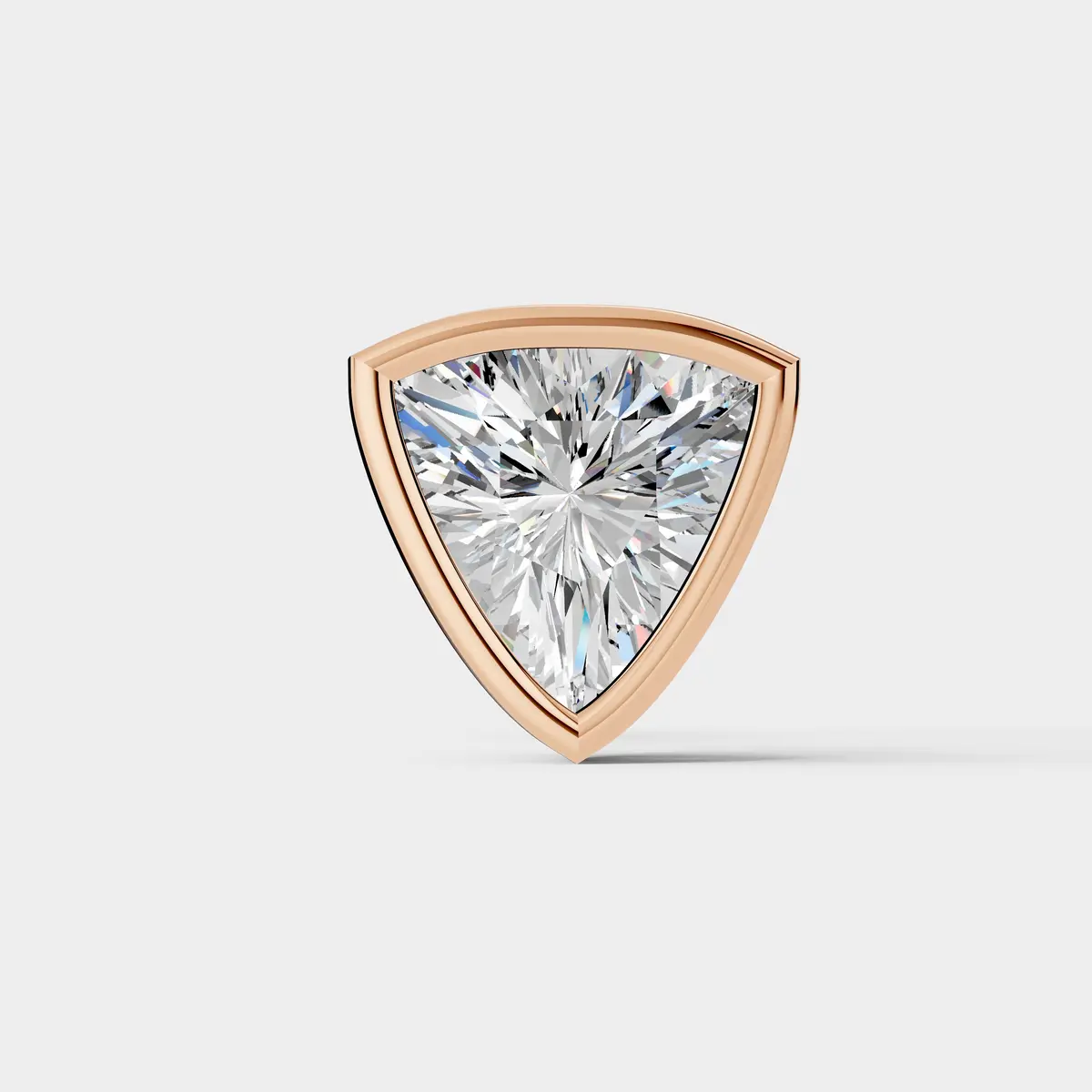 This elegant stud earring features a brilliant trillion cut diamond set in a sleek bezel-style frame that highlights its sharp triangular shape and exceptional sparkle. The clean bezel design enhances the modern look while securely surrounding the diamond, allowing light to reflect beautifully from every angle. Its bold geometric style makes it perfect for those who appreciate contemporary elegance and unique jewelry. Ideal for everyday wear or special occasions, this stud earring adds refined brilliance and modern sophistication to any jewelry collection. ?