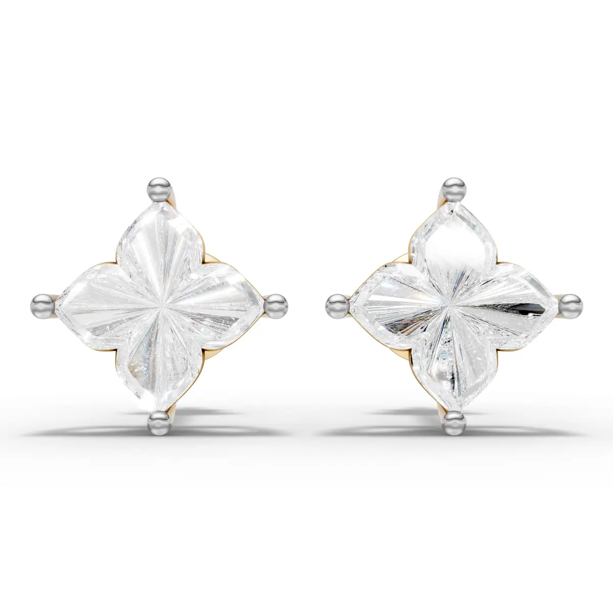 These elegant stud earrings feature beautifully crafted lily cut diamonds arranged in a delicate floral-inspired design. The unique lily cut pattern creates soft petal-like facets that reflect light with a graceful sparkle. The floral silhouette gives the earrings a refined and feminine charm while maintaining a timeless look. Designed with a secure screw-back closure for comfortable and reliable wear throughout the day. Perfect for everyday elegance or special occasions, these studs bring subtle brilliance and sophisticated style to any jewelry collection. ?
