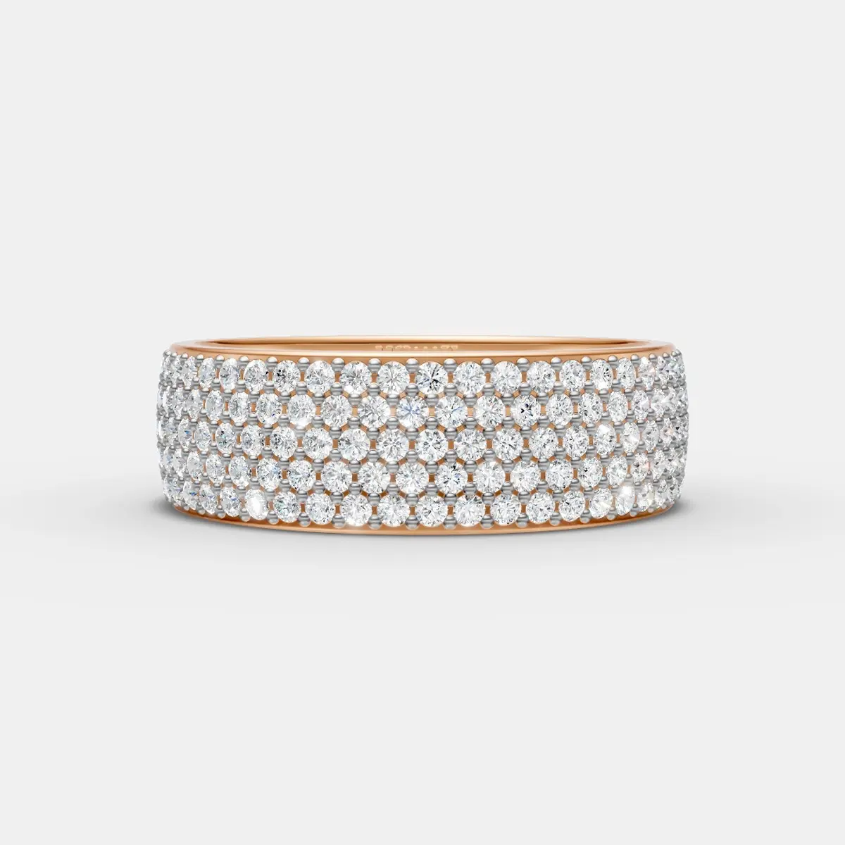 This elegant ring features five sparkling diamond lines arranged in a beautifully structured design. The closely set diamonds create a radiant surface that reflects light from every angle. Its smooth and balanced silhouette gives the ring a bold yet refined appearance. The multi-line arrangement adds depth, brilliance, and a modern luxurious feel. Perfect for everyday elegance or special occasions, this ring offers timeless sparkle and style. ?