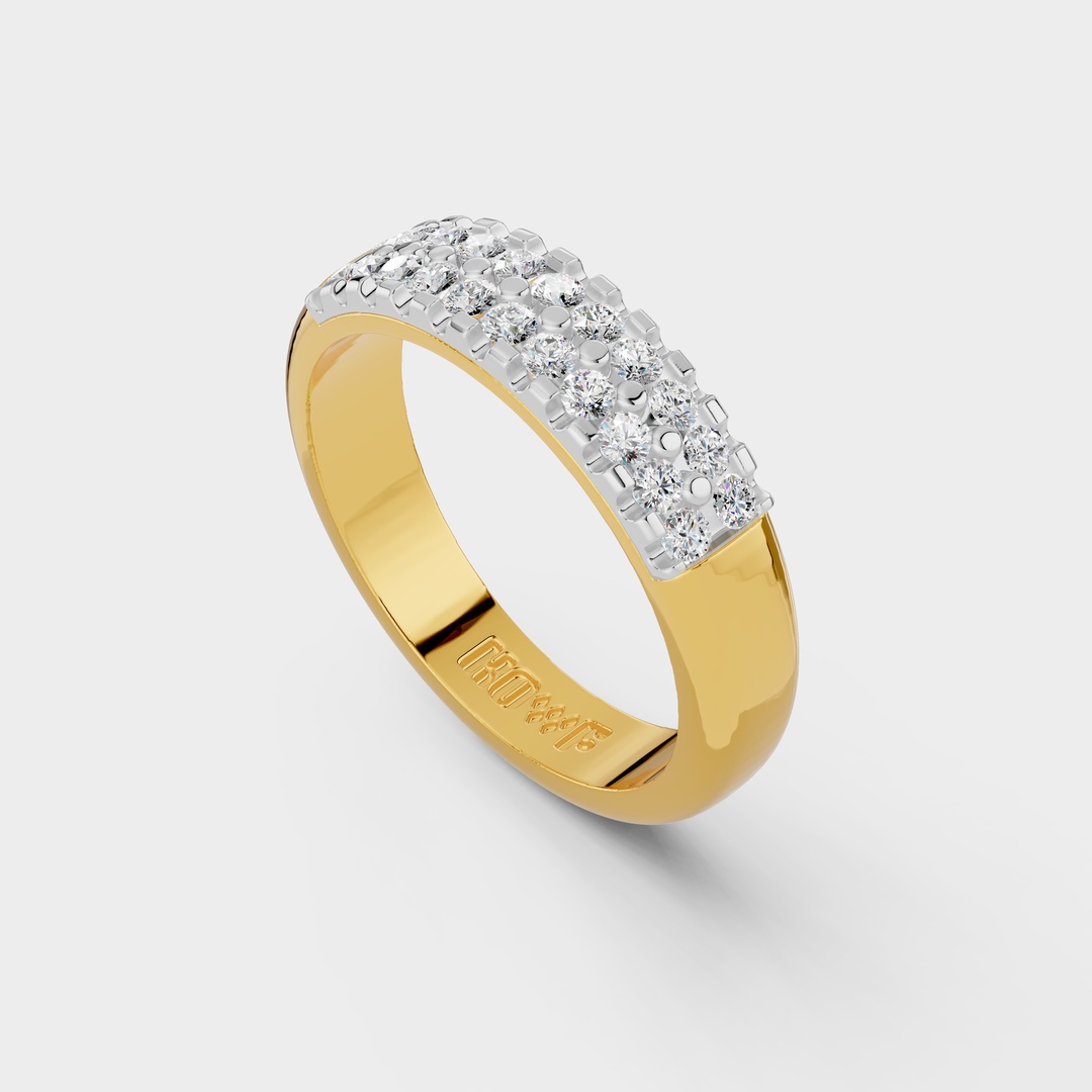 This elegant ring features two rows of brilliant round diamonds arranged in a sleek and balanced design. The carefully aligned diamonds create a continuous sparkle that enhances the ring?s refined look. Its smooth band structure offers a comfortable fit while maintaining a bold and stylish presence. The double-row arrangement adds depth, brilliance, and a modern touch to the overall design. Perfect for everyday elegance or special occasions, this ring delivers timeless shine and sophistication. ?