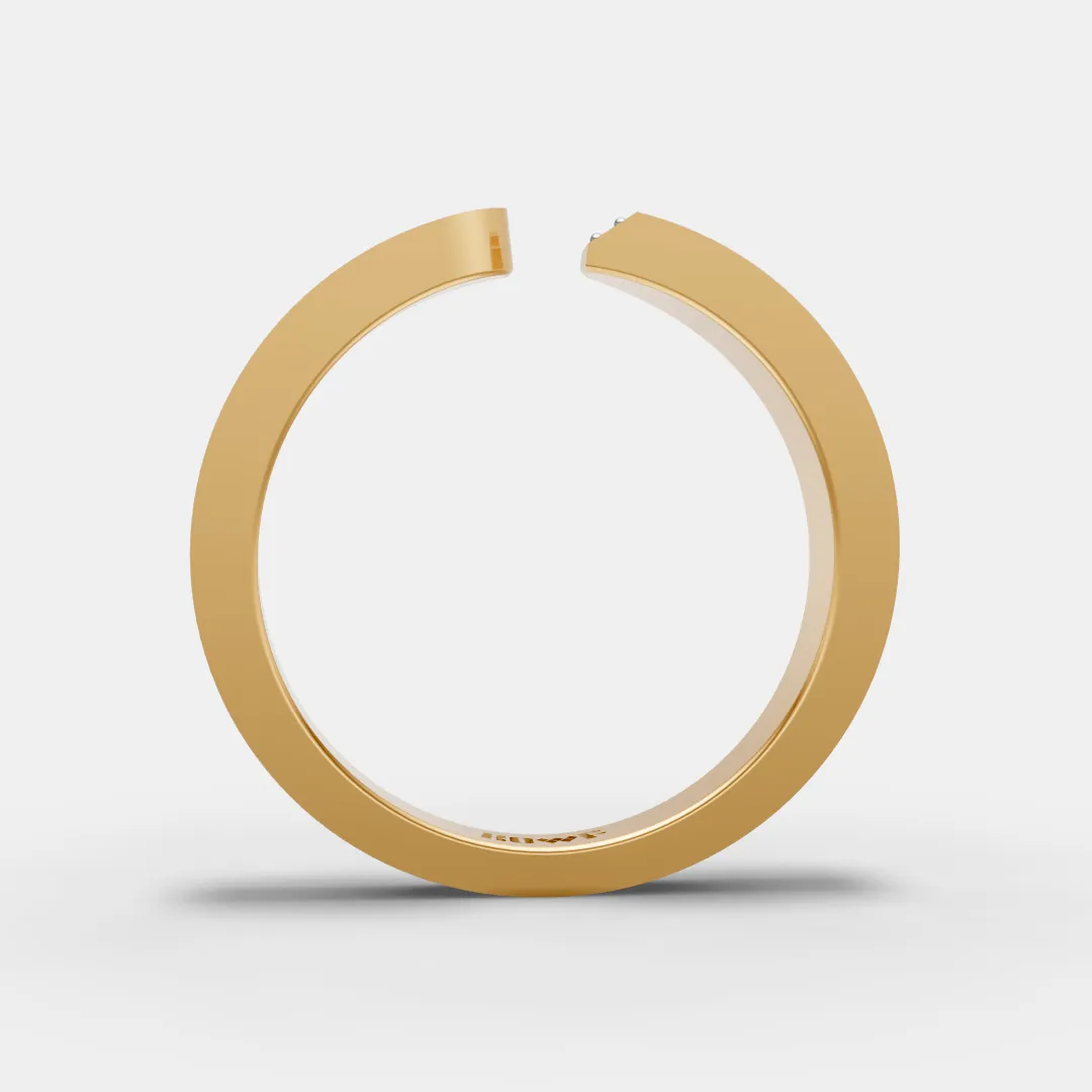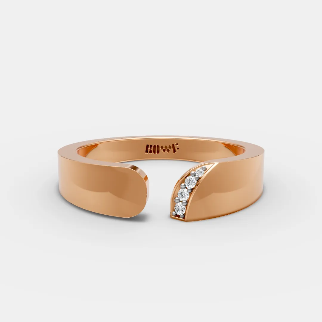A sleek open-end ring designed with a smooth, modern silhouette and a subtle diamond accent detail. One side features a polished finish while the other is adorned with sparkling diamonds, creating a beautiful balance of simplicity and brilliance. Minimal yet elegant, this ring is perfect for everyday wear and adds a refined touch to any jewelry collection. ?