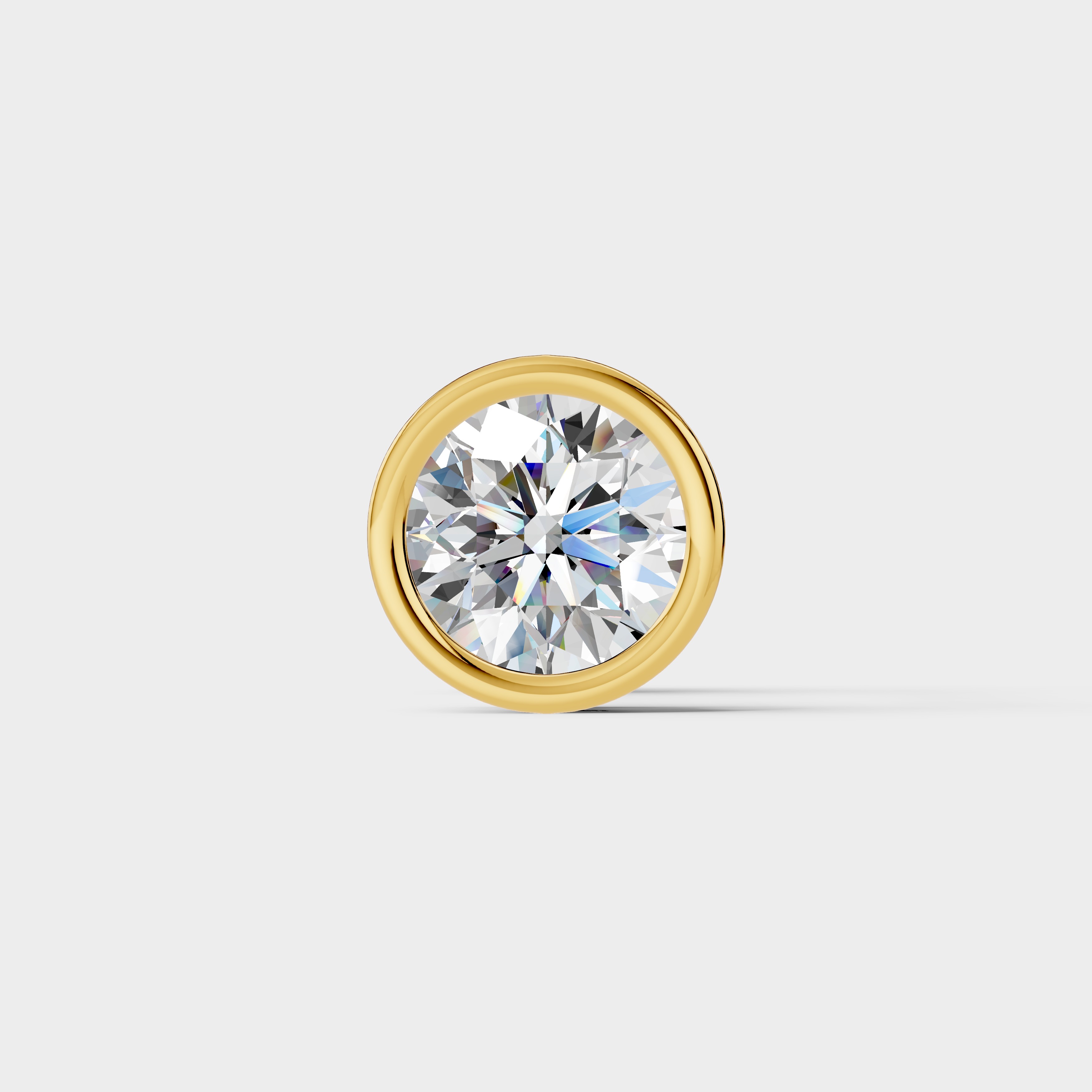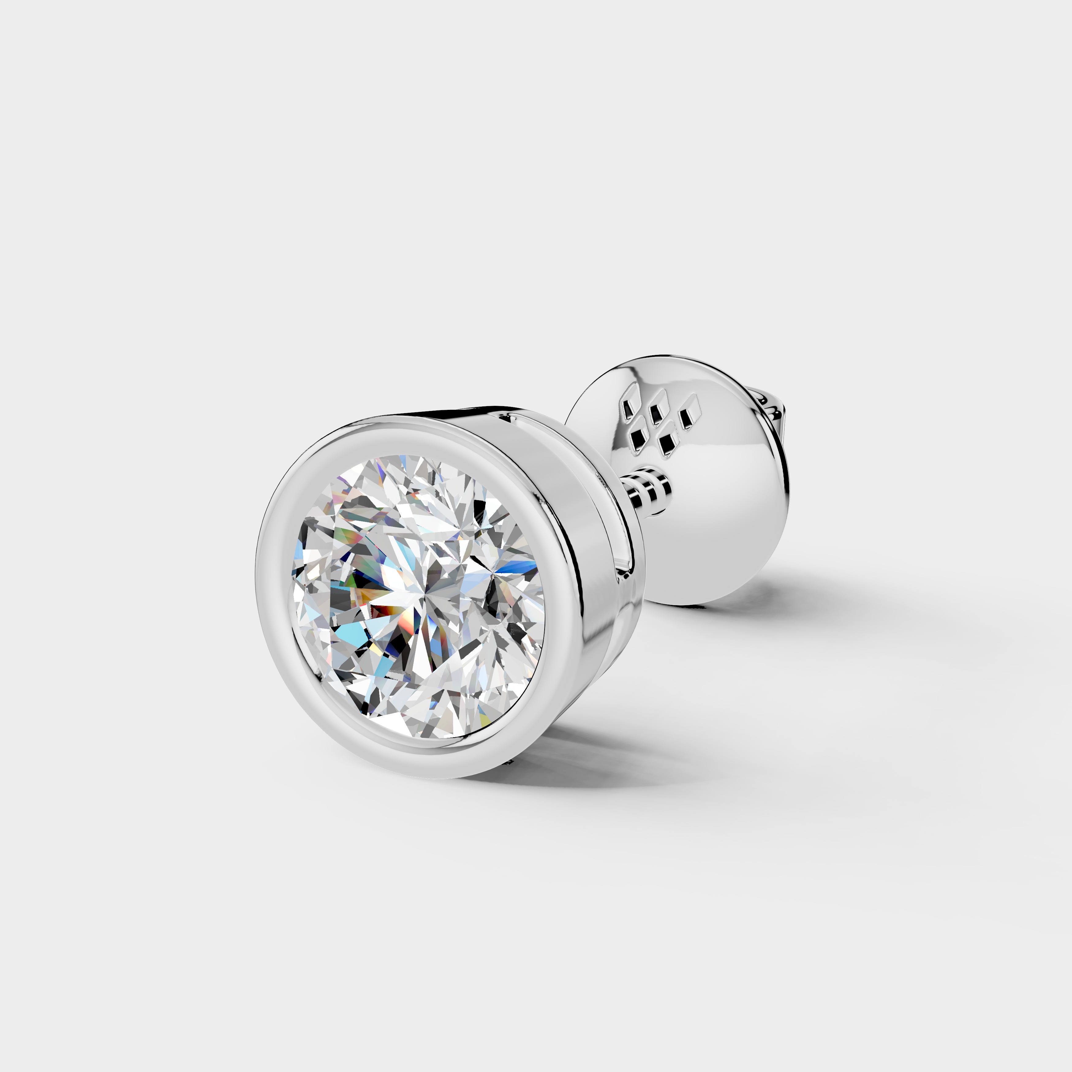 This elegant stud earring features a brilliant round diamond set in a sleek bezel-style frame that highlights its radiant sparkle. The smooth circular design enhances the diamond?s brilliance while giving the piece a clean and modern look. Its minimal yet sophisticated style makes it perfect for everyday wear or special occasions. The secure screw-back closure ensures comfortable and reliable wear throughout the day. A timeless piece that adds classic brilliance and refined elegance to any jewelry collection. ?